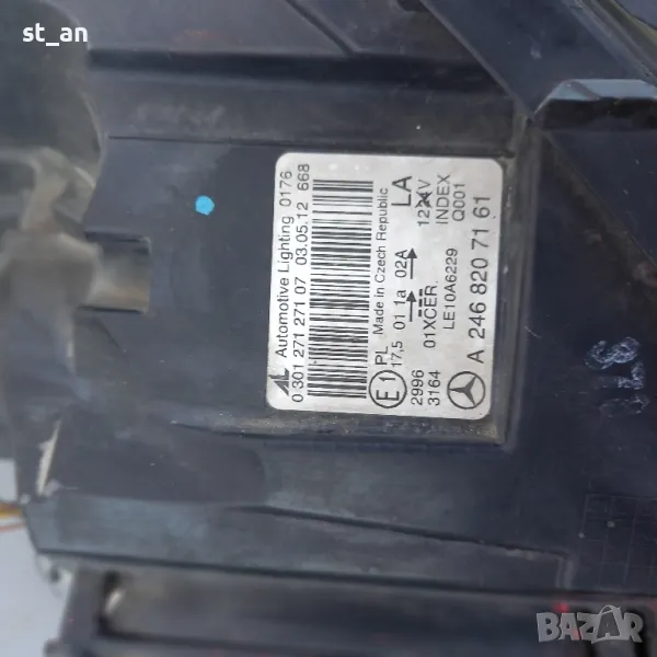 Оборудвани фарове B class W246. Левият фар е напълно здрав. A 2468207161. Цена за левия 700лв. Десния фар е със счупено стъкло и счупен захват (захвата е наличен). A 2468207261. Цена 350лв. Цена за двата фара 900лв.