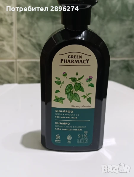 Шампоан с коприва и репей,за нормална и мазна коса. Без парабени. Не е много пенлив. Мирише натурално,без да е парфюмиран. Ползвам само него и един с бреза и цинк,като ги редувам( от пет,шест години). Нямам пърхот и мога да си позволя да мия косата си един път седмично.