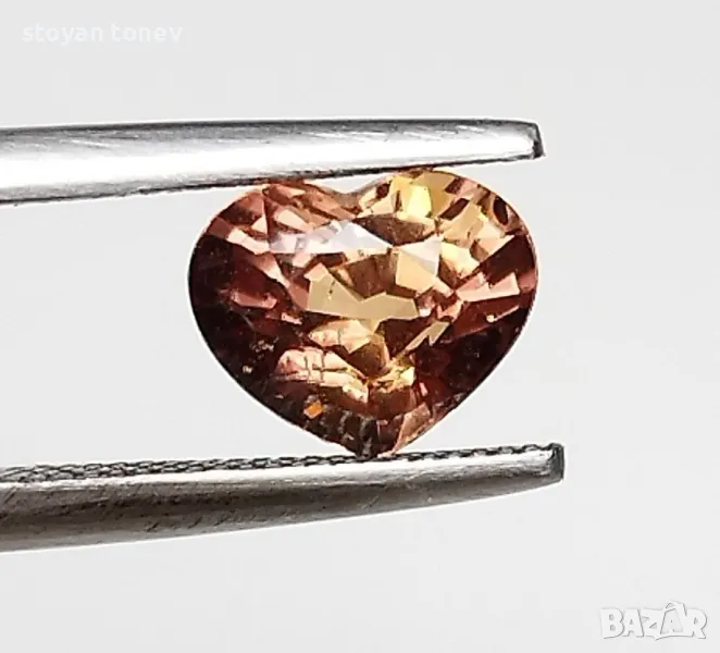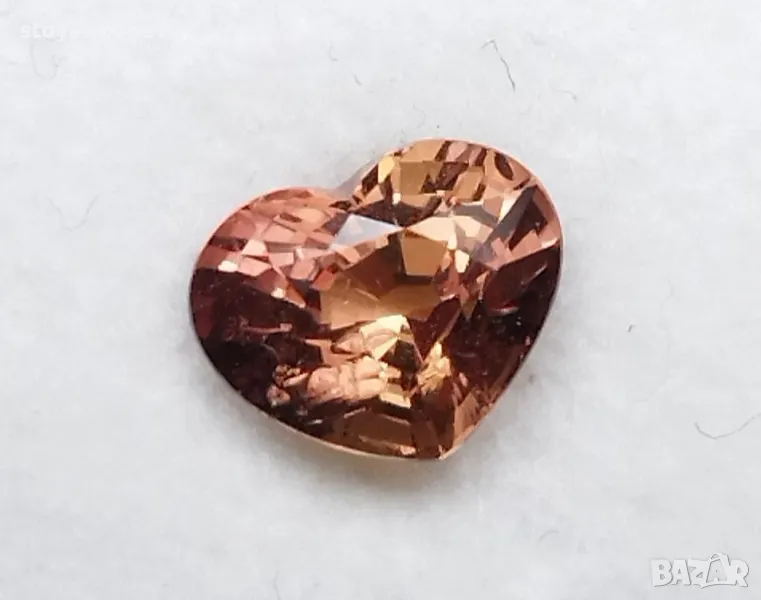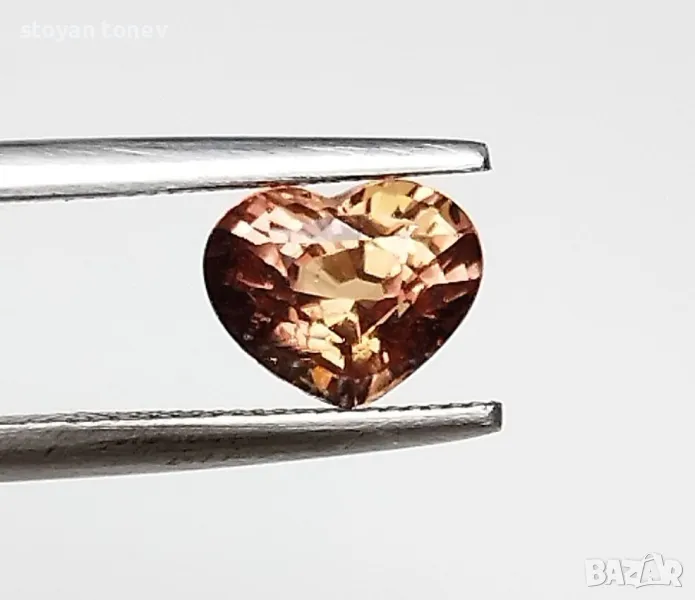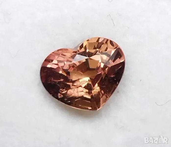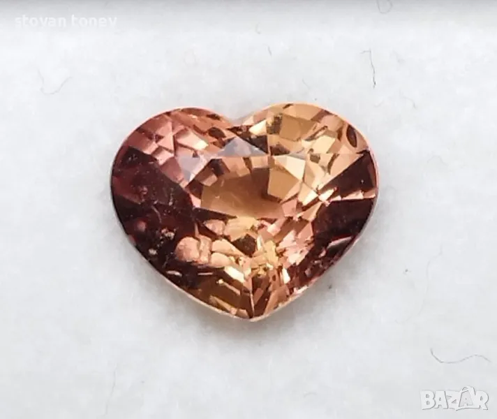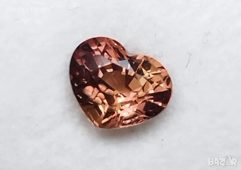 Естествен сапфир с тегло 1.04кт. и произход Танзания. Чистота VS без видими включения. Цвета е розово оранжев. Формата е сърце с размери: 6.6 x 5.3 x 4 mm.