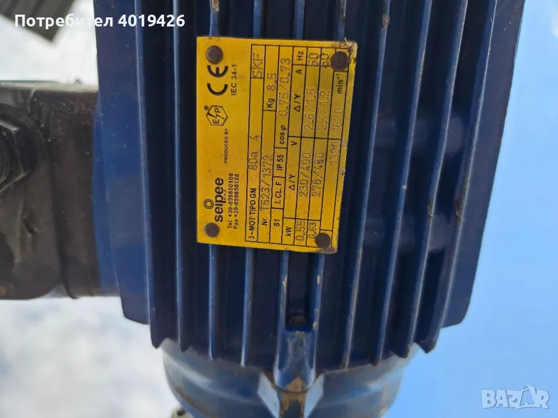 шнек 2 метра,със дозираща клапа и редуктор,данни на ел.двигала и редуктора на снимките