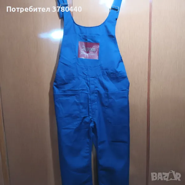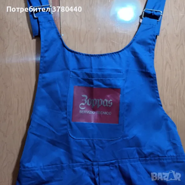 Нов италиански син гащеризон, размер 48/ в см.- талия с ластик - 50см.,крачол 80см/С 4 джоба- 1заден, 2предни и 1на гърдите. Дюкян с цип.