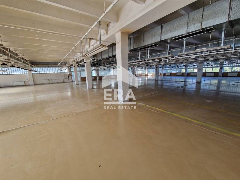 Първи етаж: просторни производствени помещения с височина 3,5 м, складове с рампа за камиони с двустранен достъп и сервизни помещения.