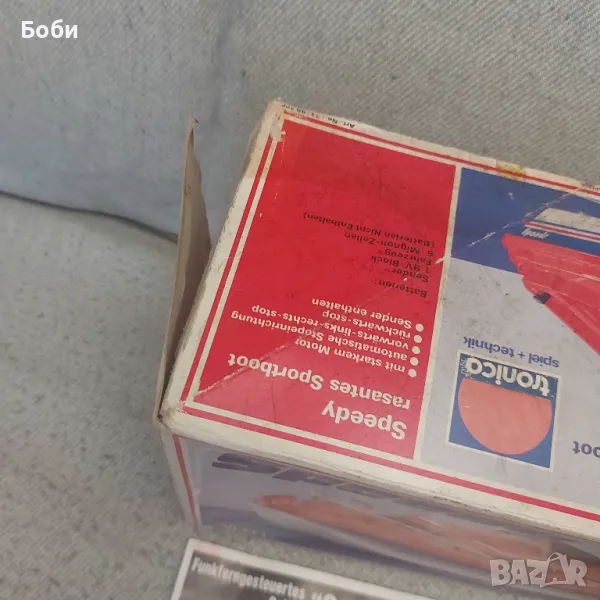 Стара Пластмасова Играчка Моторна Лодка с оригиналната кутия и инструкции