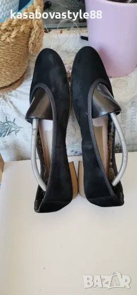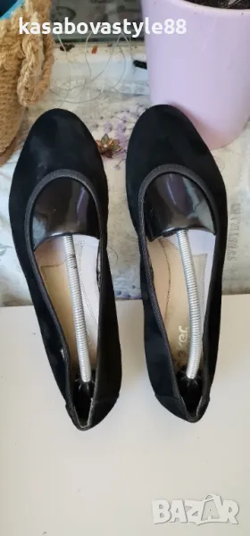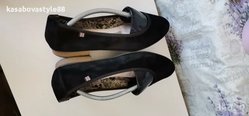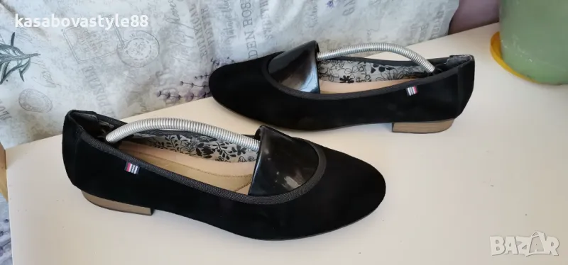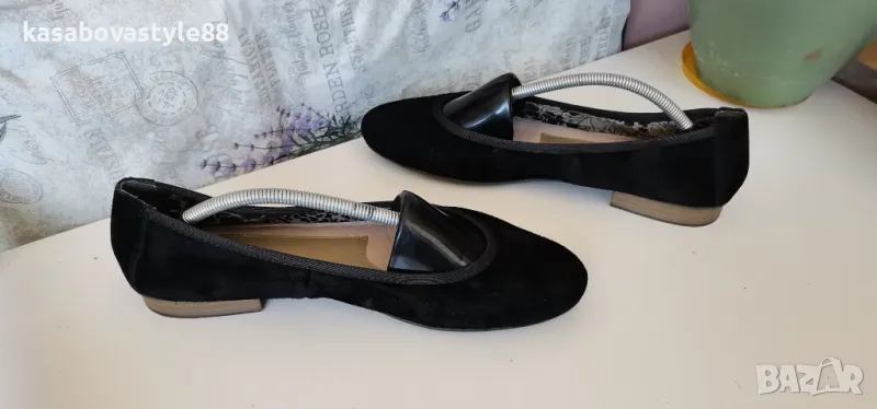 Дамски леки и комфортни балеринки за ежедневието от естествен велур и текстил и кожа отвътре. В отлично състояние. Отвътре стелката е много мека, с antistress система която облекчава стъпалата и намалява напрежението. Отговарят на 39.5н.Стелка 25.8см.Ток-1.5см.Цялостна височина отзад 8.5см.