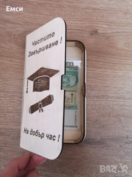 дървен плик /картичка за абитуриенти, сватба, юбилей → Обява 50064166