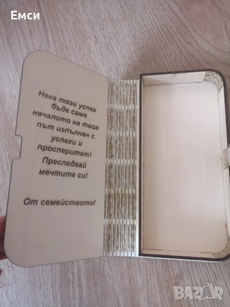 Дървен плик /картичка за абитуриенти, сватба, юбилей, кръщене. Чудесен начин да поднесем пари или ваучер.Цена 15 лв. Ако желаете може да се гравира име, дата или текст вътре, тогава цената ще е 18 лв