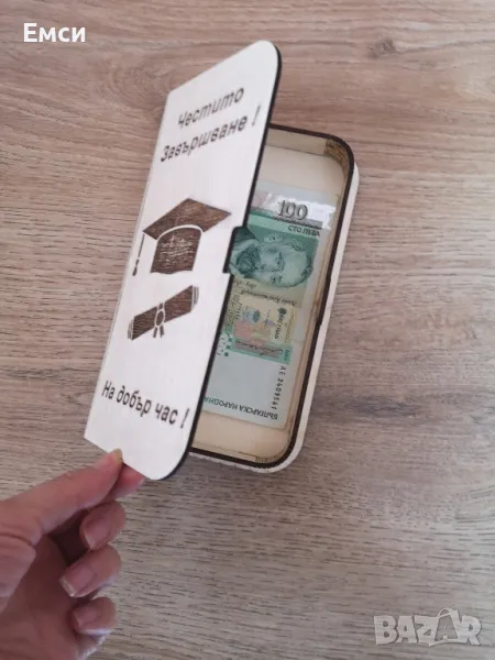 Дървен плик /картичка за абитуриенти, сватба, юбилей, кръщене. Чудесен начин да поднесем пари или ваучер.Цена 15 лв. Ако желаете може да се гравира име, дата или текст вътре, тогава цената ще е 18 лв