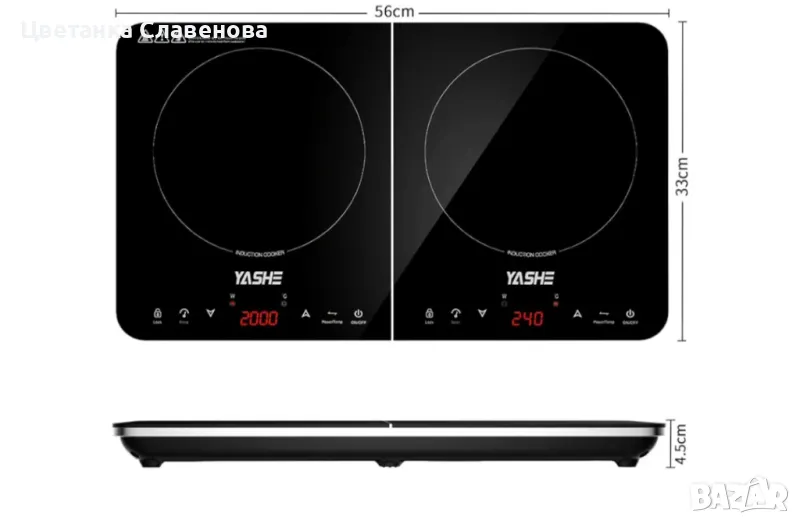 Магнитен съвместим и елегантен дизайн: Този двустранен индукционен плот е с размери 56 cm x 33 cm x 45 cm и е съвместим с магнитни съдове за готвене, които спират да нагряват, когато съдовете за готвене се извадят. Елегантният дизайн на индукционния плот не само го прави практичен уред, но и добавя стил към декора на вашата кухня.