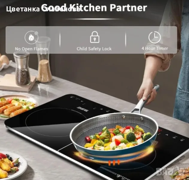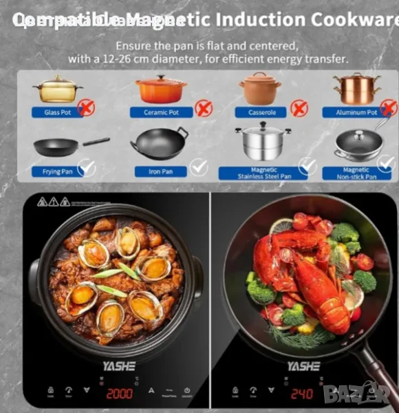 Интелигентни и безопасни функции: Двустранният индукционен плот е подходящ само за магнитни съдове за готвене (12-26 см) и спира, когато се извади. Той ще се изключи автоматично, ако температурата надвиши безопасно ниво. За безопасност и ефективност, котлонът има 4-часов таймер, заключване за деца и нехлъзгаща се постелка