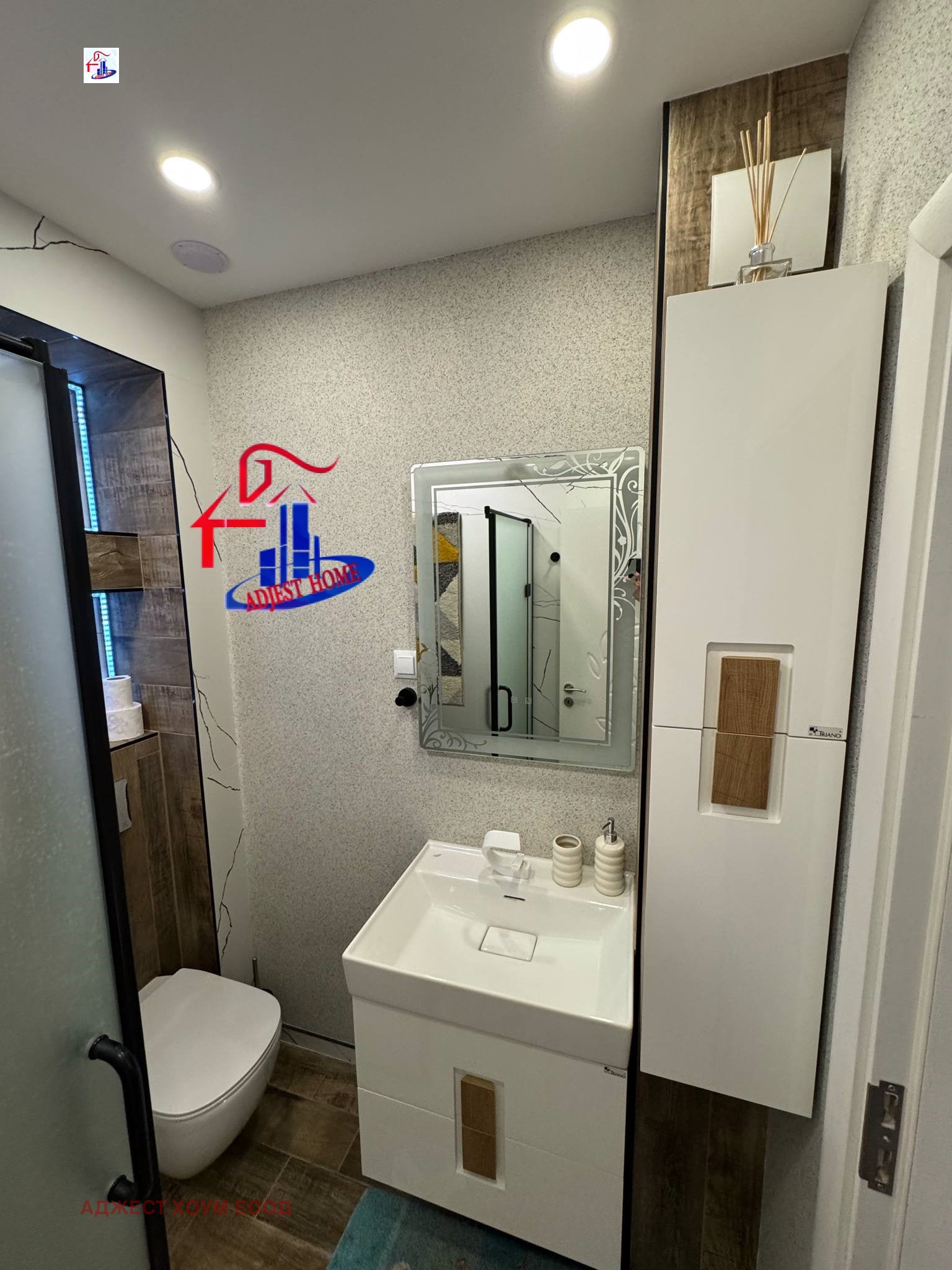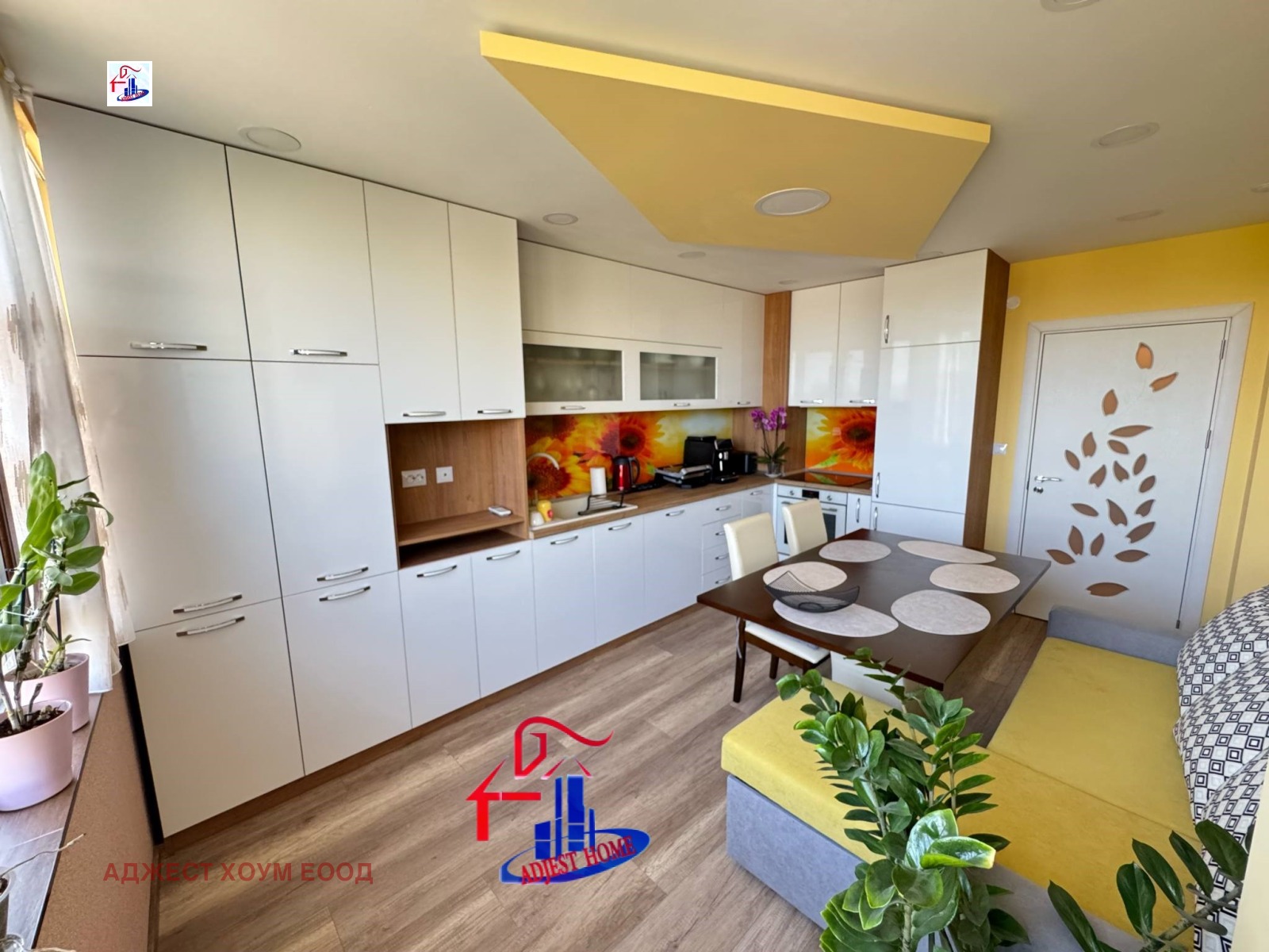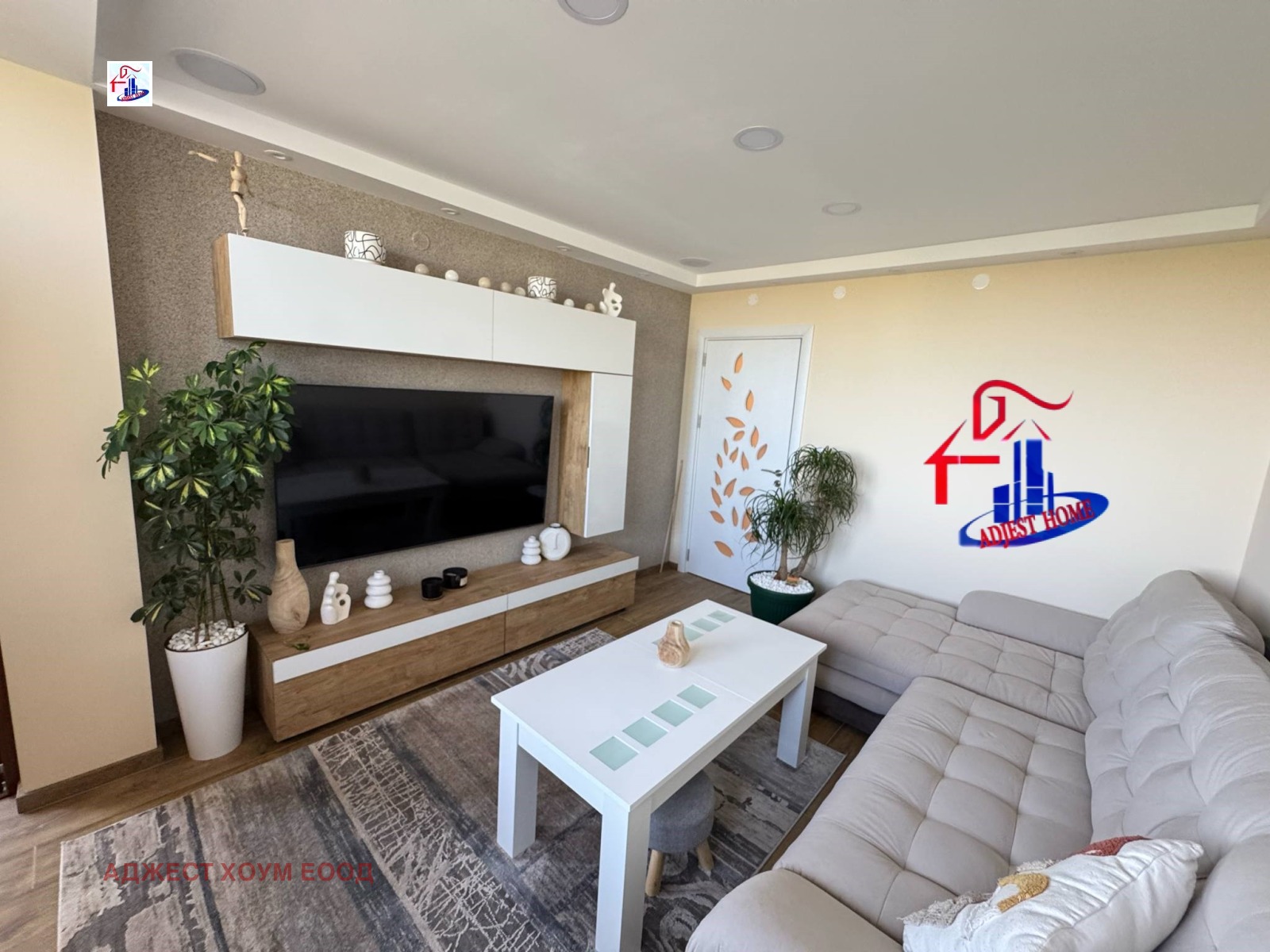 ~ 🛋 Състояние - жилището е слънчево и просторно, направено с висококачествени материали, със сменени В и К и ЕЛ инсталации, висок клас ПВЦ дограма, интериорни вътрешни врати, блиндирана входна врата, вътрешна изолация на стени и тавани, аудио озвучение във всички помещения с високоговорители по стените, подовите настилки са ламиниран паркет и гранитогрес.