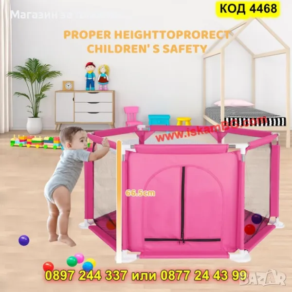 Осигурете на вашето дете безопасно, просторно и удобно място за игра с тази красива розова шестоъгълна кошара. Идеална за използване както на закрито, така и на открито – у дома, на терасата или в градината.