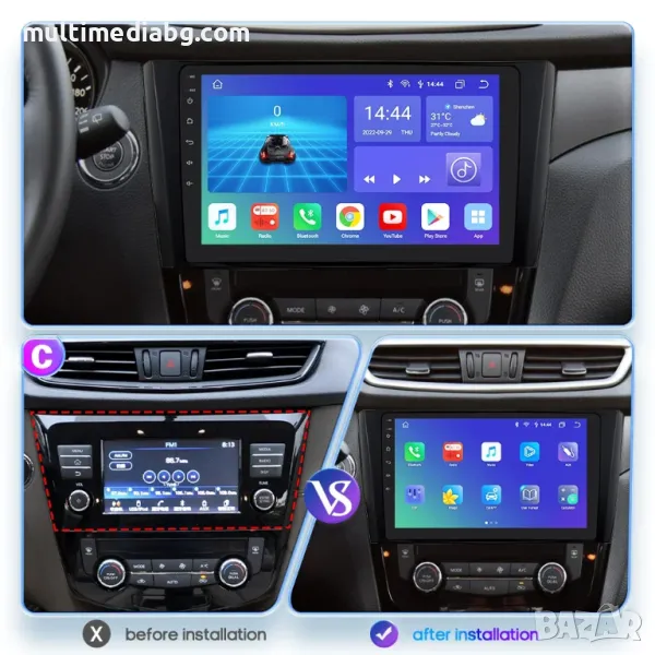 Мултимедия с операционна система Android за Nissan X-Trail 3,Qashqai J11 и Rogue съвместима с моделите от 2013 до 2017 година.