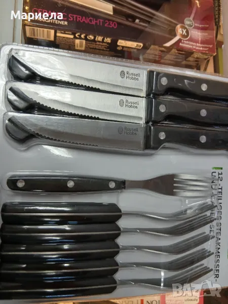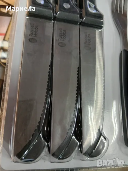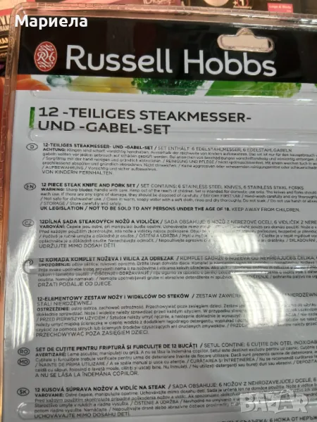 Нови -внос от Германия.Нарежете сочни пържоли или други качествени парчета месо без усилие с комплекта ножове и вилици за пържоли Russell Hobbs.