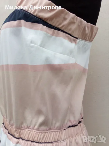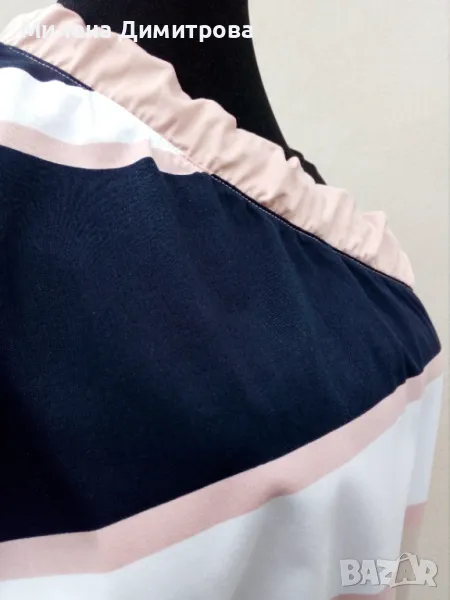 * Деколте с ластик и припокриваща се предна част на полата с асиметричен преден подгъв.