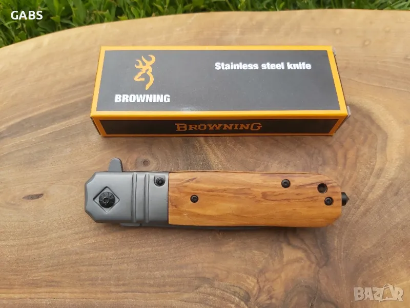 нож Browning с дървена дръжка и острие за чупене на стъкло.