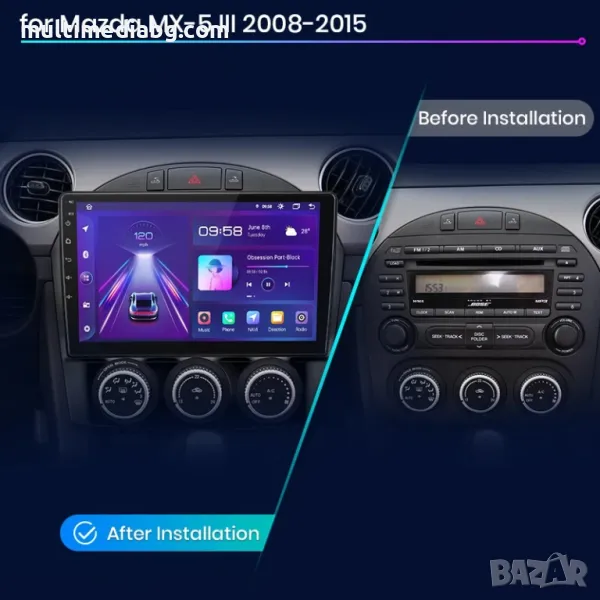 Мултимедия с операционна система Android за Мазда МХ-5 съвместима с моделите от 2008 до 2015 година