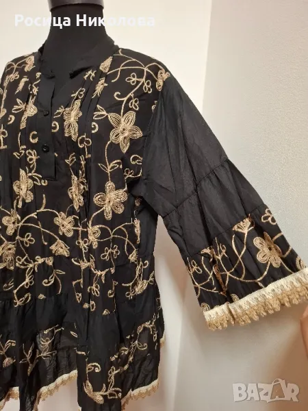 Красива риза-туника с бродерия на предницата от памук и полиестер с размери-дълж 80см, гр об 108см, ханш до 160см, ръкав 44см.