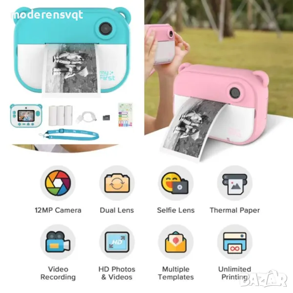 С този фотоапарат малките фотографи могат да запечатват незабравими моменти и веднага да ги разпечатват, благодарение на технологията за моментален печат с термохартия, без необходимост от мастило и други консумативи!