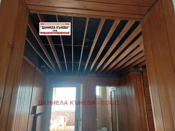 Имотът се състои от основен етаж със ЗП 121 кв .м, разпределени както следва: две просторни стаи ,дневна с кухненски бокс, остъклена тераса, баня+WC, мансарден етаж със санитарно помещение и открита тераса, което може да се преустрои за живеене или ателие за творческа дейност, 1/2 ид. части от таванско и избено помещение, както и 1/2 ид. части от дворното място с площ от 242 кв.м. Топ локация. Тихо и спокойно място. Ремонтиран покрив. Имотът е за ремонт.