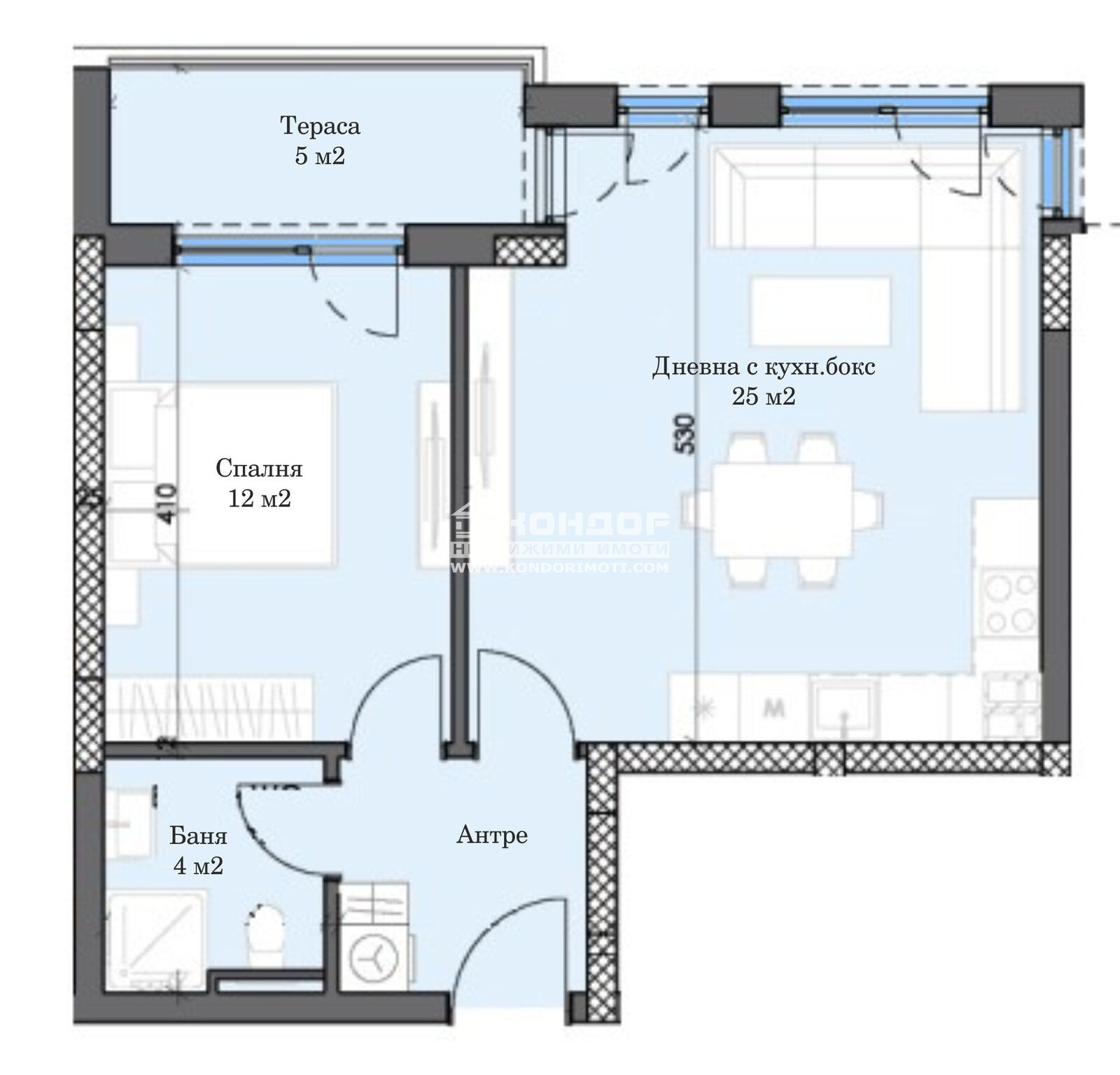 Оферта 66802: Предлагаме Ви възможността да закупите 2 - стаен апартамент в новоизграждащ се луксозен жилищен комплекс с модерна визия, проектиран да създаде максимален комфорт на живущите в него. Функционално разположени жилищни секции с елегантен силует готов да предложи комфорт и модерен начин на живот. Едно от основните му предимства е страхотната локация, отлична комуникативност и динамична пътна инфраструктура, която осигурява бърз и лесен достъп до комплекса от всяка точка на града. Той съчетава лукс, спокойствие и комфорт с подсигурени паркоместа и гаражи. Жилището се състои от светла дневна/25 кв.м./ с кухненска част и трапезария, една самостоятелна спалня 12.30 кв.м., баня с тоалетна, входно антре с място за перално и една обща тераса. Основната концепция при проектирането е да се постигнат просторни и функционални стаи, с цел да се създаде максимален уют на модерното семейство. Изключителна съвременна архитектура и модерна технология на строителство. Визията е иновативна, привличаща внимание с уникалността си. Всяко жилище ще разполага с пълно окабеляване за домофон, интернет и кабелна телевизия, общите части са луксозно завършени, жилищата са с алуминиева дограма с троен стъклопакет от най-висок клас, масивна блиндирана входна врата. За удобство на живущите съществува възможността да закупят подземни паркоместа и гаражи с топла връзка към комплекса. Гъвкави схеми на разсрочено плащане спрямо възможностите на клиента в рамките на строителството или закупуване чрез Банков Кредит, на изключително изгодни условия за клиенти на агенцията !!! Приложените изображения са от завършени проекти на строителната фирма.ВИЖТЕ ОЩЕ ИЗГОДНИ ОФЕРТИ НА https://www.kondorimoti.com/ С ЕЖЕДНЕВНА АКТУАЛИЗАЦИЯ!