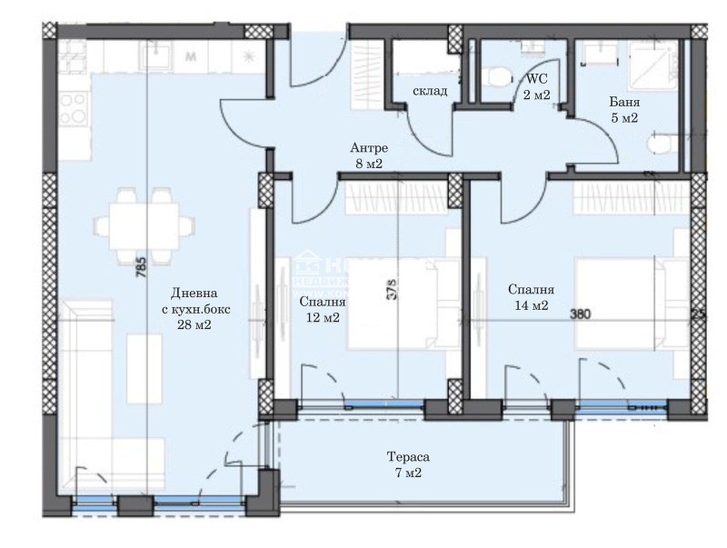 Оферта 66800: Предлагаме Ви възможността да закупите 3 - стаен апартамент с ИЗЦЯЛО ЮЖНО ИЗЛОЖЕНИЕ в новоизграждащ се луксозен жилищен комплекс с модерна визия, проектиран да създаде максимален комфорт на живущите в него. Функционално разположени жилищни секции с елегантен силует готов да предложи комфорт и модерен начин на живот. Едно от основните му предимства е страхотната локация, отлична комуникативност и динамична пътна инфраструктура, която осигурява бърз и лесен достъп до комплекса от всяка точка на града. Той съчетава лукс, спокойствие и комфорт с подсигурени паркоместа и гаражи. Жилището се състои от просторна дневна/29 кв.м./ с кухненска част и трапезария, две самостоятелни спални: детска 12,28кв.м, и родителска 14,36м2, баня с тоалетна, втора тоалетна, перално, входно антре с място за гардероб и една тераса. Основната концепция при проектирането е да се постигнат просторни и функционални стаи, с цел да се създаде максимален уют на модерното семейство. Изключителна съвременна архитектура и модерна технология на строителство. Визията е иновативна, привличаща внимание с уникалността си. Всяко жилище ще разполага с пълно окабеляване за домофон, интернет и кабелна телевизия, общите части са луксозно завършени, жилищата са с алуминиева дограма с троен стъклопакет от най-висок клас, масивна блиндирана входна врата. За удобство на живущите съществува възможността да закупят подземни паркоместа и гаражи с топла връзка към комплекса. Гъвкави схеми на разсрочено плащане спрямо възможностите на клиента в рамките на строителството или закупуване чрез Банков Кредит, на изключително изгодни условия за клиенти на агенцията !!! Приложените изображения са от завършени проекти на строителната фирма.ВИЖТЕ ОЩЕ ИЗГОДНИ ОФЕРТИ НА https://www.kondorimoti.com/ С ЕЖЕДНЕВНА АКТУАЛИЗАЦИЯ!