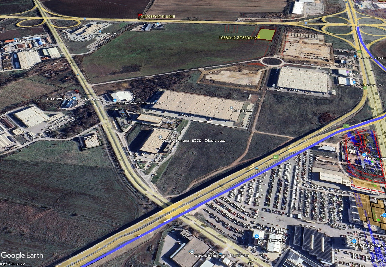 УПИ 10680м2 с ПУП ПРЗ за 5800м2 ЗП на втора линия от Околовръстно шосе до CTP