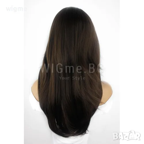 Дълга чуплива тъмнокестенява перука на светли кичури Бейлие с универсален размер – можете да регулирате широчината й с помощта на специални ластици, които задържат стабилно перуката върху главата Ви и предпазват от разместване. Това е красива, естествено изглеждаща реалистична перука подходяща за ежедневно носене или тематично събитие.