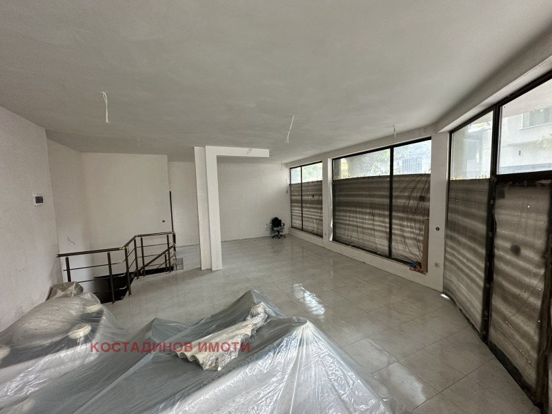 Помещение на две нива в чисто нова сграда със супер локация. На две нива е. Партер 65кв.м и подземен 115кв.м. В района на хотел Тримонциум. Подходящо за салон за красота, зала експозиция, застрахователен офис, счетоводна кантора, агенция за недвижими имоти, IT център, школа, online търговия и други. За първи наематели! При сериозен интерес и огледи обадете се на фирма Костадинов Имоти.