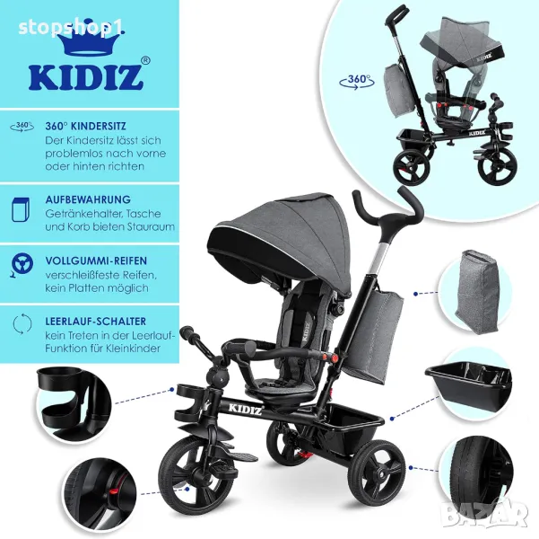 С чанта и кошница: За съхранение, триколката има универсален, подвижен джоб с цип за затваряне на чантата (за пазаруване, играчки и т.н.).