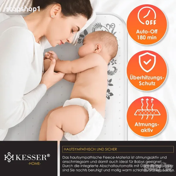 - Висококачествен материал и лесен за поддръжка: Нашето термо одеяло работи подобно на нашето електрическо одеяло от Kesser, но разликата е в употребата. Върху топлинната подложка, изработена от щадяща кожата поларена материя, която е дишаща, можете да легнете и да се загреете предварително преди лягане. С различните настройки на топлина можете сами да решите колко топло бихте искали.