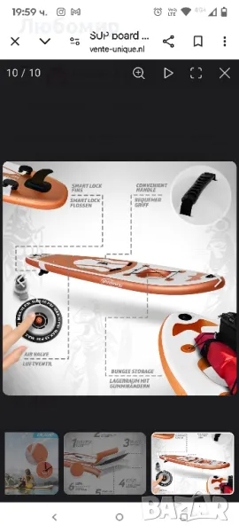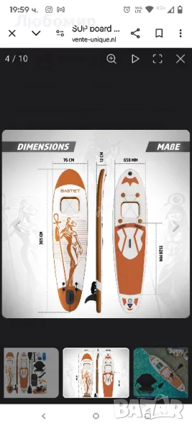 гребло, предпазно въже, помпа, чанта за носене и ремонтен комплект. Насладете се на гъвкавостта на нашата надуваема SUP дъска за най-доброто изживяване във водата!Размери на SUP дъската: 305 x 76 x 12 cm