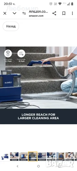 EUREKA, почистващ препарат за петна за домашни любимци, препарат за премахване на петна от килими, килими, тапицерии, автобуси и автомобили, голям резервоар за вода 50,7 унции, NEY100 с формула за почистване, син.ПРЕМАХНЕТЕ ТРУДНИТЕ ПЕТНА И ПЕТНА ЗА ДЪЛБОКО ПОЧИСТВАНЕ: Препаратът за почистване на килими и тапицерии Eureka NEY100 може лесно да се справи с упоритите петна и петна по килимите, тапицерията и интериора на автомобила, като същевременно има висока степен на връщане на вода. Постигнете дълбоко, цялостно почистване без усилие.ГОЛЯМ КАПАЦИТЕТ НА РЕЗЕРВОАРА ЗА ПО-ДЪЛГО НЕПРЕКЪСНАТО ПОЧИСТВАНЕ: Двойният голям прозрачен резервоар на тази машина за почистване на килими за дома има капацитет на резервоара за чиста вода 50,7oz и капацитет на резервоара за мръсна вода 27oz, почиства по-далеч, като разделя чистата и мръсната вода.ПО-ДЪЛЪГ ДОСЕГ ЗА ПО-ГОЛЯМА ПОЧИСТВАЩА ПЛОЩ: Лесно достигайте петна и петна по килими, тапицерия, стълби и всякакви други труднодостъпни места с 5,5 фута дълъг маркуч и 16 фута дълъг кабел на тази прахосмукачка за диван, което ви дава безплатно изживяване при почистване.МОЩНО ПРЪСКАНЕ И ЗАСУШАВАНЕ ЕФЕКТИВНО ОТСТРАНЯВАТ МЪРТВАТА: Пръскайки, търкайки и засмуквайки, този почистващ препарат за килими и тапицерии удобно и без усилие елиминира широк спектър от ежедневни замърсявания, от упорити инциденти с домашни любимци до обикновени ежедневни разливи.ПРЕМАХНЕТЕ ТРУДНИТЕ ПЕТНА С ПОЧИСТВАЩ РАЗТВОР: Прахосмукачката Eureka NEY100 за килими може ефективно да премахне грозните петна, като същевременно влива в пространството ви ярък и освежаващ аромат по време на процеса на почистване с нашия почистващ разтвор.