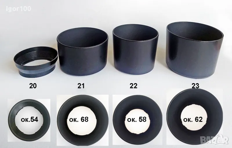 Сенници за обективи - разни видове.