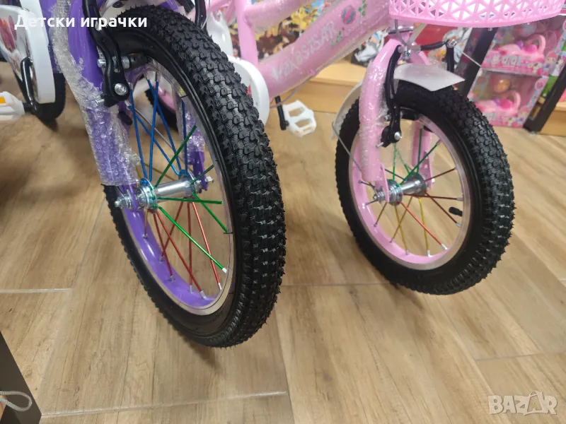- размер на колелото: 14", гумени колела, метални цветни спици;