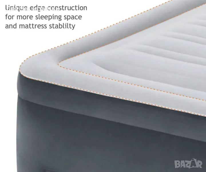Надуваемият матрак INTEX Comfort-Plush High Rise осигурява невероятна издръжливост и дългоентраен комфорт. Тайната е в конструкцията на лъчите Fiber-Tech®, която се състои от хиляди високоякостни полиестерни влакна, които осигуряват повишен комфорт, стабилност и опора.