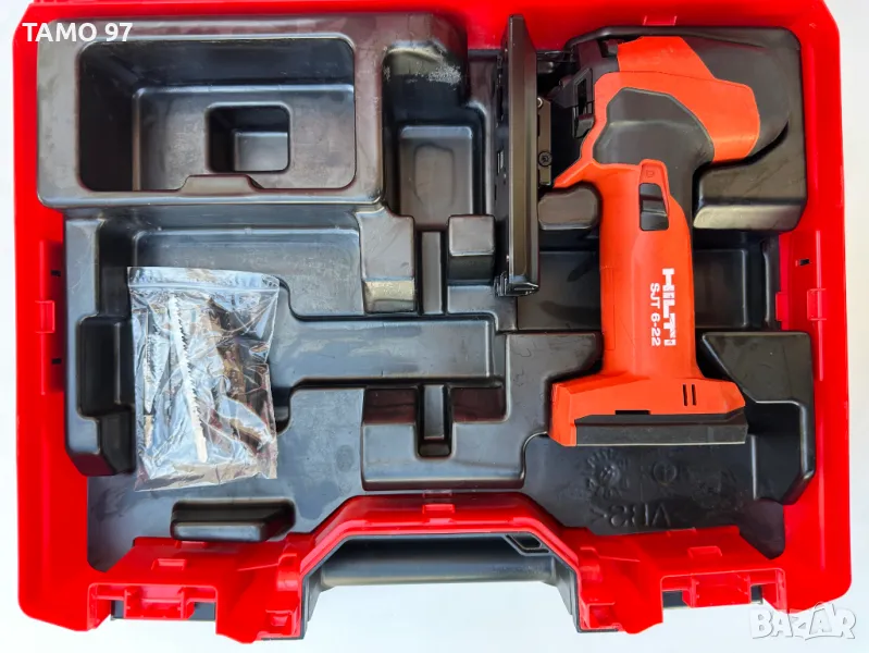 Продавам акумулаторен безчетков прободен трион (зеге) на Хилти с потенциометър за регулиране на оборотите от новата Nuron серия. Машината е в перфектно визуално състояние, използвана е малко също така работи брилянтно и без забележки, внос от Франция. Обявената цена включва машината, ножове и оригинален куфар. Пращаме с опция преглед и тест с куриерска фирма еконт може и лично предаване за гр. Шумен.