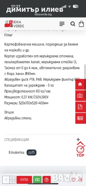 Картофобелачка Fimar ppf5 380v, снимка 1 - Обзавеждане за заведение - 50076914 Картофобелачка Fimar ppf5 380v, снимка 2 - Обзавеждане за заведение - 50076914 Картофобелачка Fimar ppf5 380v, снимка 3 - Обзавеждане за заведение - 50076914 Картофобелачка Fimar ppf5 380v, снимка 4 - Обзавеждане за заведение - 50076914 Картофобелачка Fimar ppf5 380v, снимка 5 - Обзавеждане за заведение - 50076914 Картофобелачка Fimar ppf5 380v, снимка 6 - Обзавеждане за заведение - 50076914 Картофобелачка Fimar ppf5 380v, снимка 7 - Обзавеждане за заведение - 50076914 Картофобелачка Fimar ppf5 380v, снимка 8 - Обзавеждане за заведение - 50076914 Картофобелачка Fimar ppf5 380v, снимка 9 - Обзавеждане за заведение - 50076914 Картофобелачка Fimar ppf5 380v, снимка 10 - Обзавеждане за заведение - 50076914 Картофобелачка Fimar ppf5 380v, снимка 11 - Обзавеждане за заведение - 50076914 Картофобелачка Fimar ppf5 380v, снимка 12 - Обзавеждане за заведение - 50076914 1/12
