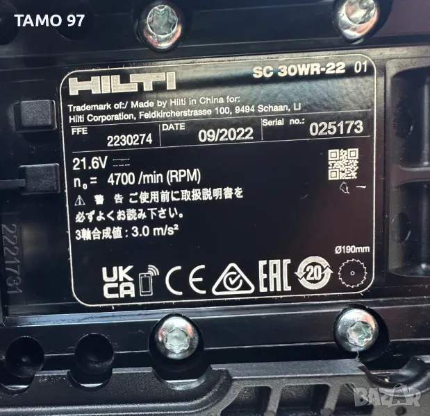 Марка и модел: Hilti SC 30WR-22