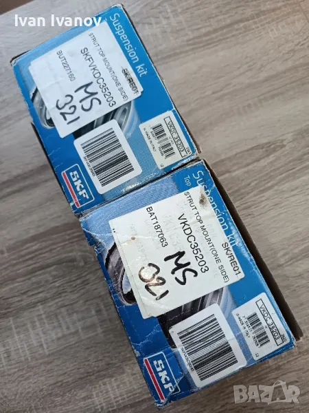 Едната тарелка вече е на моята Ланча монтиранаНови горни аксиални лагери / тарелки, тампон макферсон, за Ланча У от 1995 до 2003г. И за Фиат Пунто от 1993 до 1999г. SKF производство с номер VKDC 35203. Купувани от Ибей Англия за моята Ланча У, но засега не са ми нужни. За предните амортисьори, отгоре. Цената е за комплекта. Поединично цената е 45 лв. /бр. Вътрешната гривна на лагерчето се движи плавно и леко, без престъргване и тласъци, което гарантира, че няма да има пукане на волана при завиване.