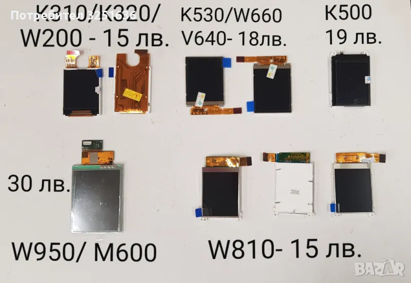 Дисплей за Sony Ericsson 15 лв. Z600 голям, Z310, K310, K320, W200, W810, 18 лв.- Z300, K530, W660, K200, K205, K220, R300, W350 - 12 лв., K500 - 19 лв.,