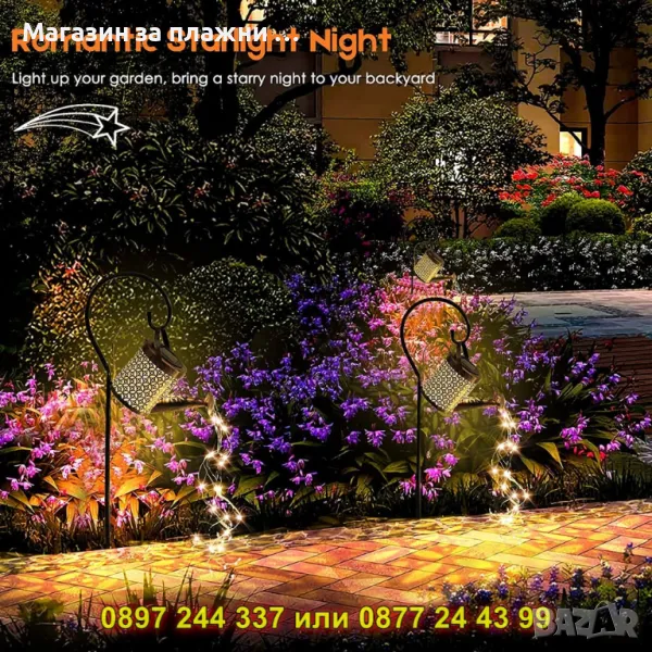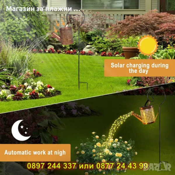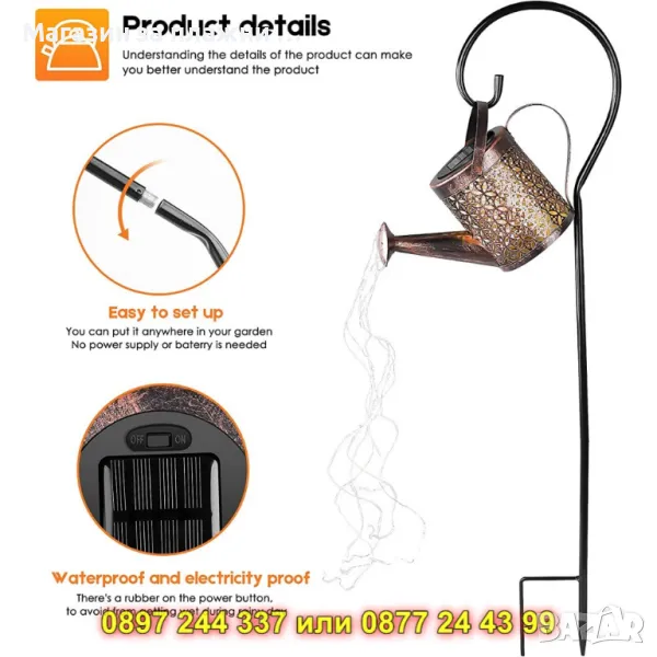 Добавете приказен блясък към вашата градина с декоративната соларна лампа във формата на лейка. Със своя артистичен дизайн и 36 фини LED светлини, тази лампа създава илюзия за сияеща водна струя – ефект, който омагьосва с нежна топла светлина.