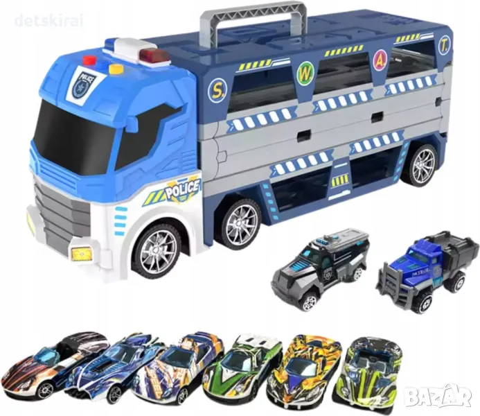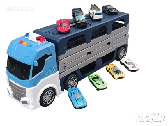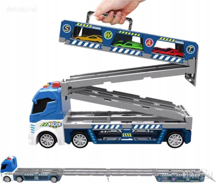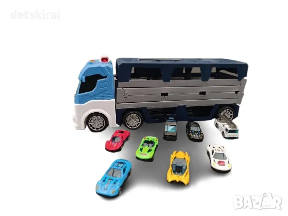 Разгънете камиона, за да разкриете дълга състезателна писта с вграден катапулт . Това позволява бързо стартиране на колите, добавяйки състезание и динамика към играта . Състезанията на тази писта са истинско предизвикателство за младите пилоти!