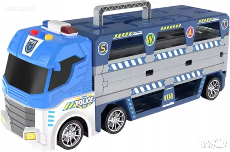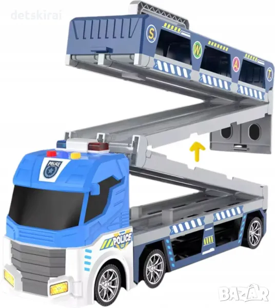 Заведете детето си в света на динамичните състезания и полицейските преследвания с Многофункционалния полицейски камион . Този уникален комплект съчетава функцията на камион с разтегателна състезателна писта и катапулт, гарантирайки незабравимо игрово изживяване!