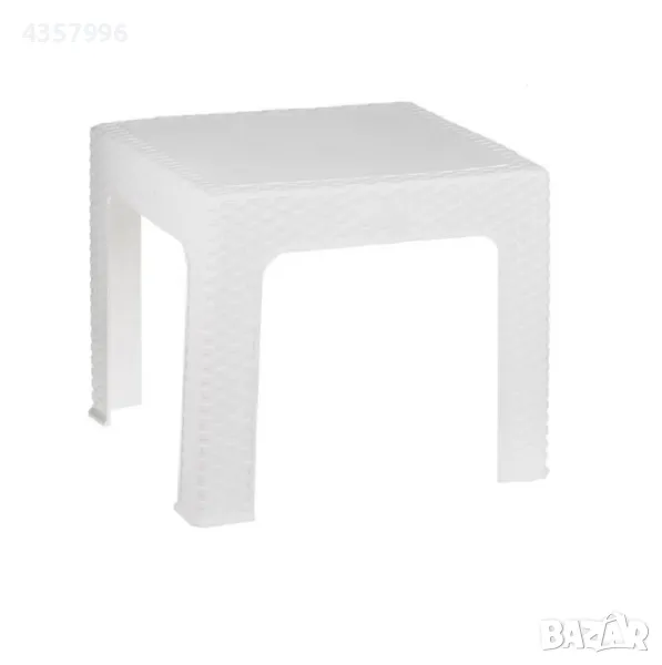 Пластмасова масичка за балкон, градина, къмпинг, плаж, с дизайн от тъкан ратан в тъмно кафяв или бял цвят.
