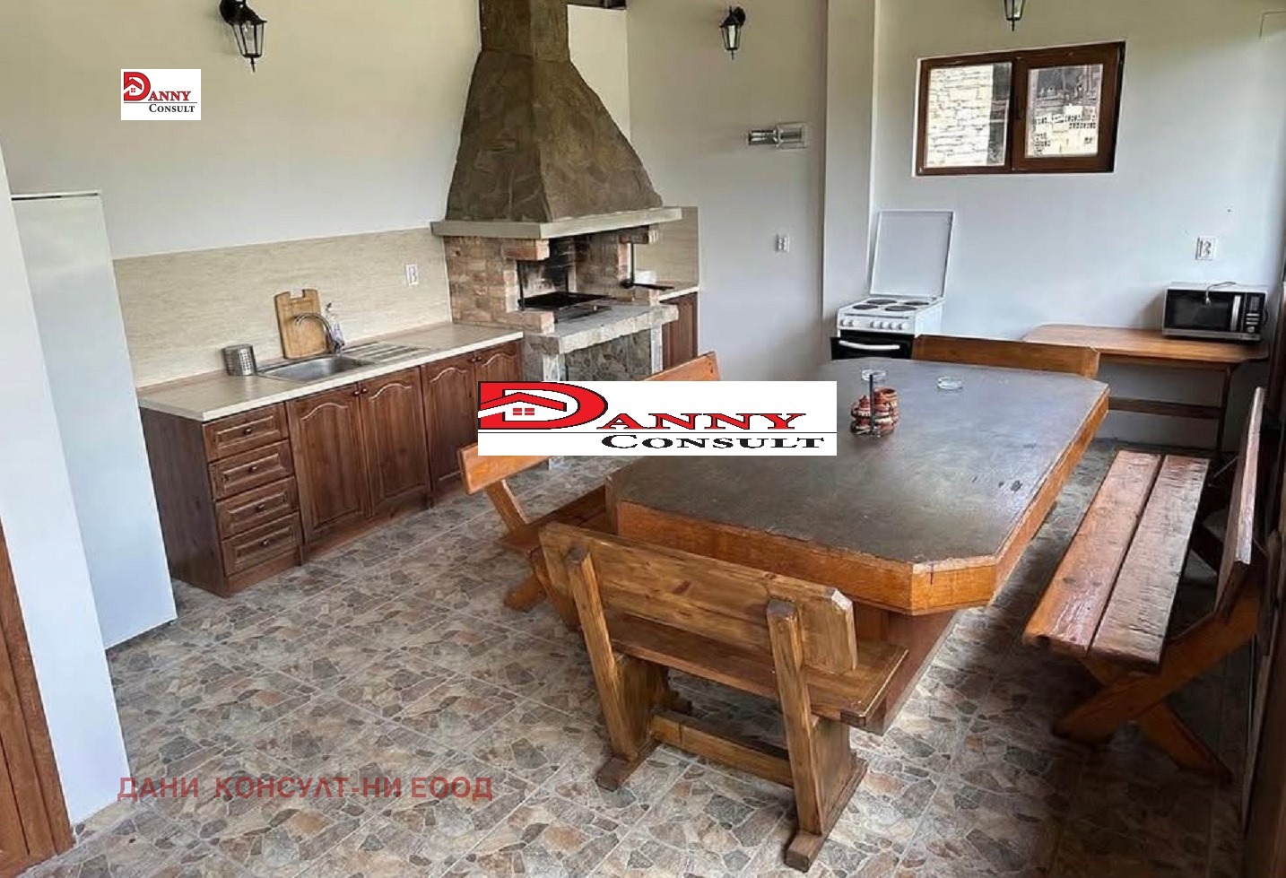 Агенция за недвижими имоти ДАНИ КОНСУЛТ предлага на Вашето внимание двуетажна къща с панорамна гледка в с. Коевци, което се намира в близост до гр. Сухиндол, на 20 км от гр. Павликени и на 45 км от гр. Велико Търново. Имотът е с РЗП от 120 кв.м, камък/тухла/гредоред и има следното разпределение: първи етаж - всекидневна с разтегателен диван и кухня. До вторият етаж се стига посредством вътрешни стълби където са поместени три спални, от които едната е с четири легла, а другите две - с по три. Къщата разполага с три санитарни възела. В пристройка до нея са обособени механа с камина и барбекю с кухненска част. Отоплението и охлаждането е решено посредством климатици. Подовите настилки са дървено дюшеме, ламинат, теракот и гранитогрес, дограмата е подменена с PVC. Покривът е нов, както на къщата, така и на механата. Дворът е 1000 кв.м. красиво аранжиран, в него са поместени вкопан басейн, паркоместа за няколко автомобила и допълнителни постройки. Имотът се намира на 50 м от асфалтов път, водоснабден и електрифициран, продава се с наличното обзавеждане.