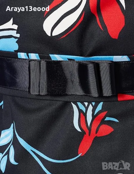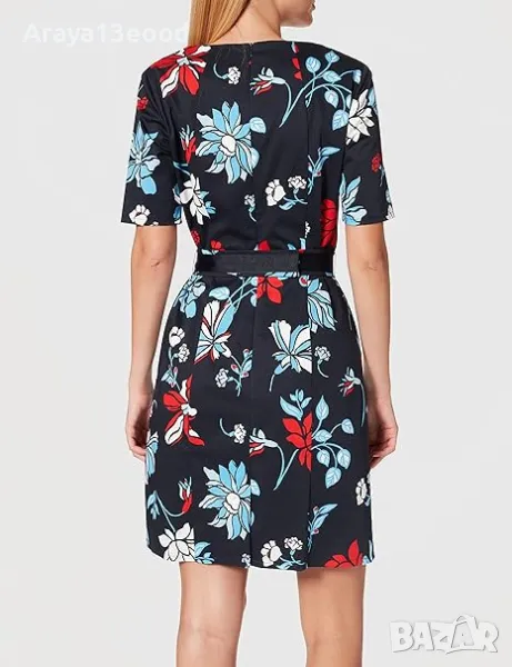 Тази стилна рокля с флорални мотиви е перфектният избор за офиса, официално събитие или вечеря с приятели. Изработена от висококачествена материя, роклята съчетава удобство и женствена елегантност. Черната основа е акцентирана с контрастен флорален принт в червено, синьо и бяло, който придава свеж и модерен вид. Класическият прав силует и късите ръкави осигуряват комфорт през целия ден, а черният колан в талията подчертава фигурата и добавя изискан завършек.