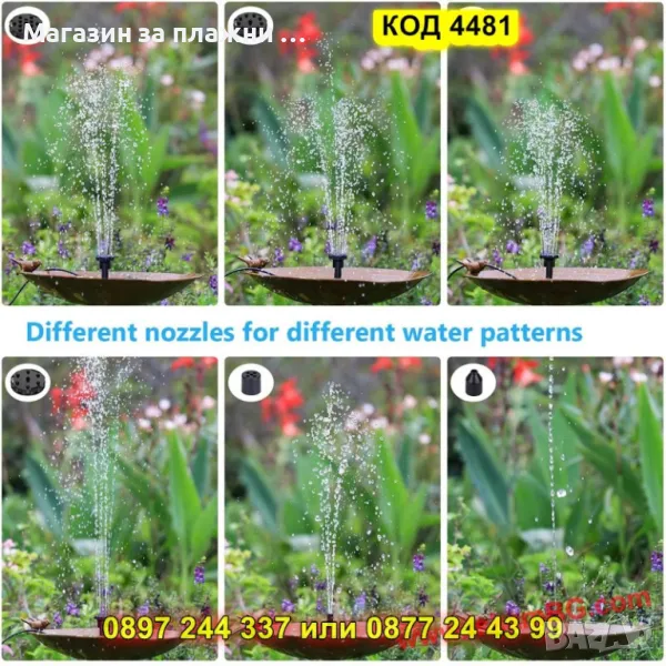 Само 3 секунди след като бъде изложен на слънце, фонтанът стартира автоматично, без нужда от електрическо захранване или батерии. С 4 сменяеми дюзи, можете да избирате между различни форми на водната струя според настроението или дизайна на пространството. Вендузите в основата осигуряват стабилност, а филтърът предпазва помпата от запушване.