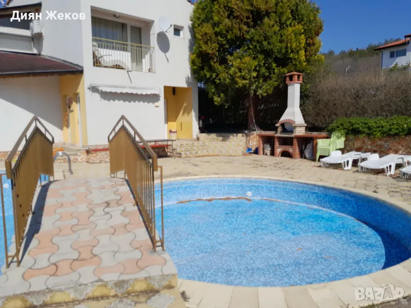 - изградено барбекю , място за шезлонги и детски кът.