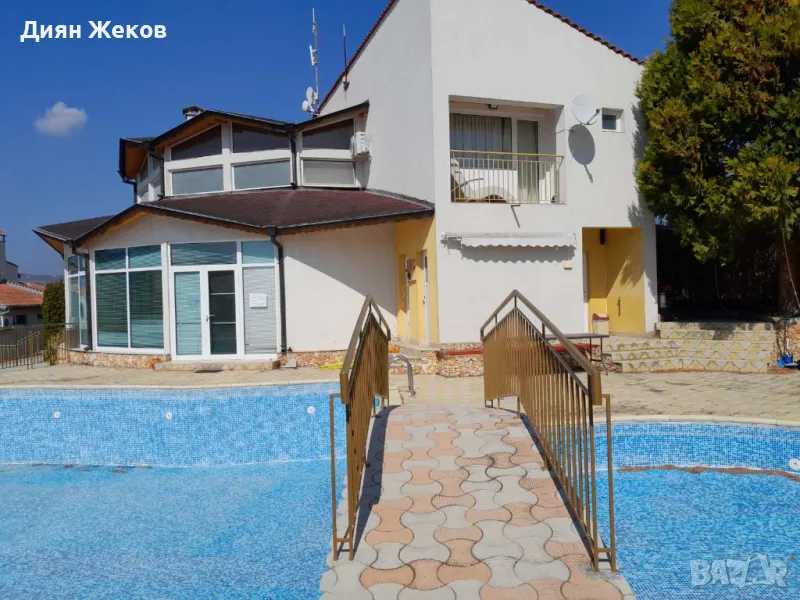 - двор с площ 328 кв.м.и голям басейн с изградена детска зона за плуване, за самостоятелно ползване.