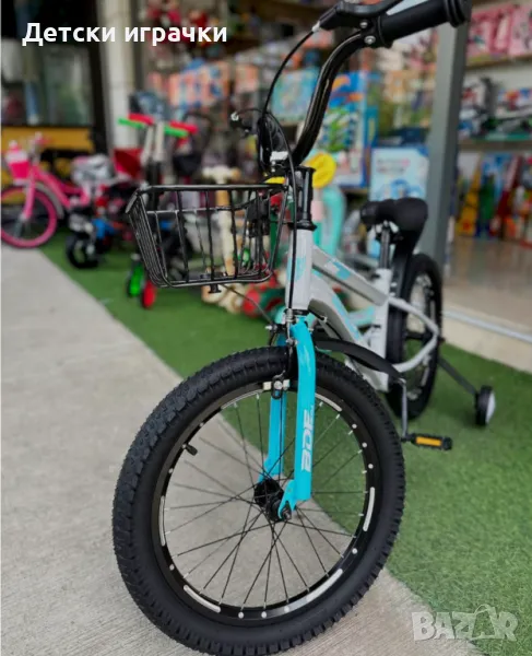 Велосипед BDF 16" с дискови спирачки, кош, помощни колела, за деца